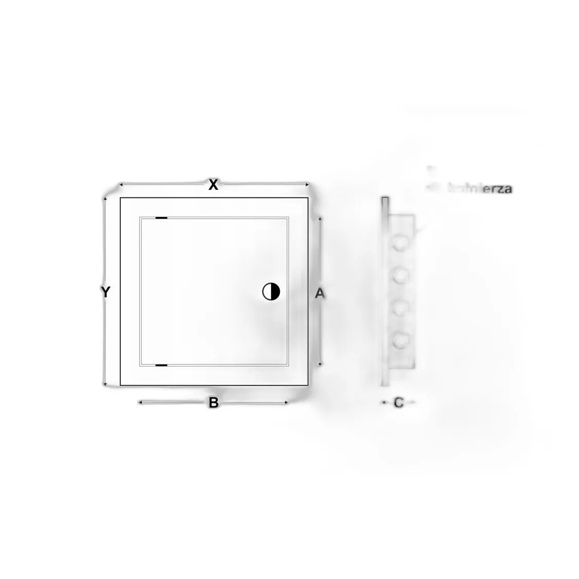 Drzwiczki rewizyjne z tworzywa ABS, przeznaczone do szybkiego dostępu do instalacji. Wymiary 15 x 15 cm.