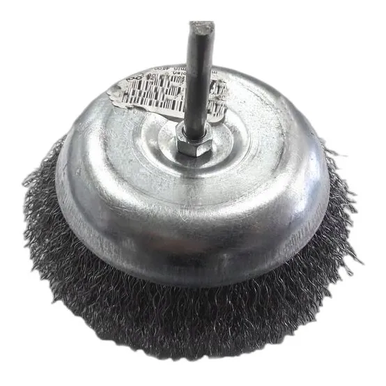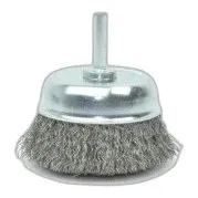 Szczotka doczołowa trzpień stalowa o wymiarach 100 mm długości i 25 mm średnicy. Narzędzie przeznaczone do czyszczenia i usuwania zadziorów z metalu.