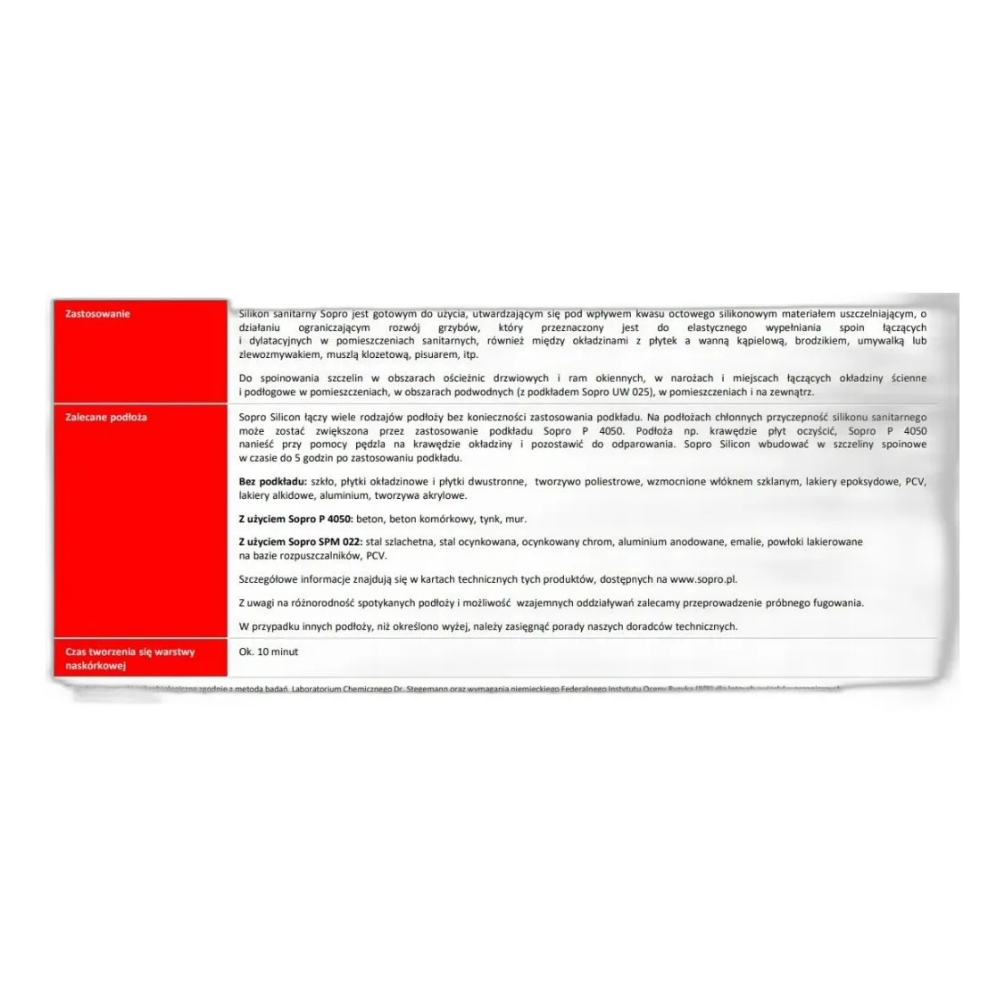 Elastyczny silikon o trwałości 24 godziny. Nadaje się do uszczelniania złączy w łazience i kuchni. Wzór: (C₂H₆O)SiO₁.₅.
