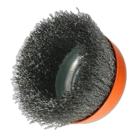 Szczotka doczołowa działa końcem — nadaje się do płaskich powierzchni i trudno dostępnych kątów. Boczna działa bokiem i lepiej sprawdza się przy kształtach zakrzywionych. Ta o gwincie M14 to typ uniwersalny. Najczęściej używana w warsztatach naprawczych.