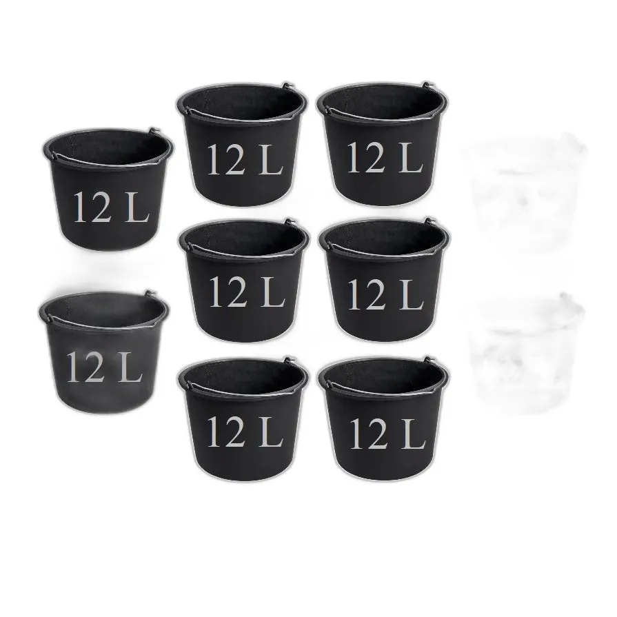 Wiadro z tworzywa sztucznego o pojemności 12 l. Ma skalę pomiarową i wygodny uchwyt. Przydatne na budowie i w garażu.