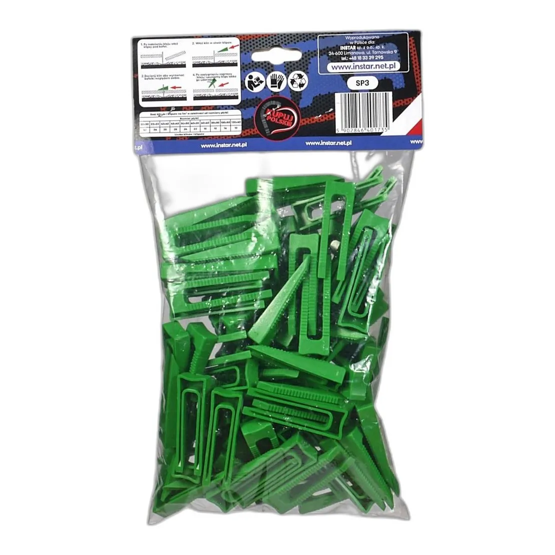 Profesjonalne klipsy do precyzyjnego poziomowania i równomiernego rozstawiania płytek. Zapewniają idealne fugi i płaską powierzchnię okładziny. Komplet 100 sztuk.